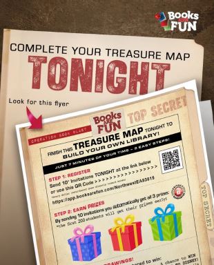 ¡Comienza la Book Blast hoy! Dedica 7 minutos esta noche a completar el Mapa del Tesoro para ganar increíbles recompensas, participar en sorteos de premios y comenzar a construir tu biblioteca en casa. ¡Invita a 10+ amigos y familiares para obtener tus recompensas y la oportunidad de ganar uno de los cuatro Cofres del Tesoro o Cofre del Tesoro Épico! Visita https://app.booksarefun.com/LovellES32703 ¡y desbloquea tu tesoro!